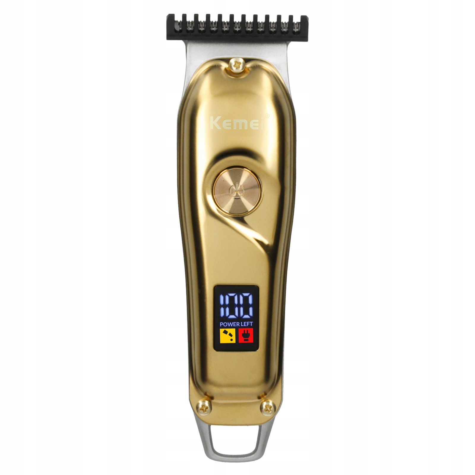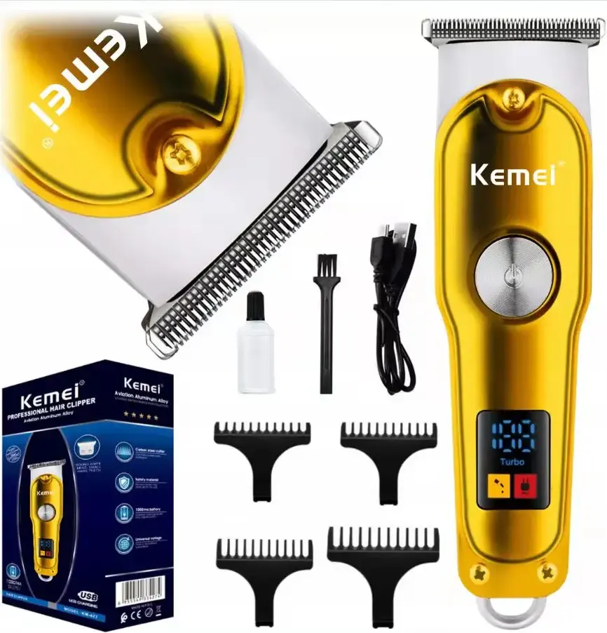 احصل على تجربة قص شعر احترافية في راحة منزلك مع ماكينة قص الشعر Kemei KM-427. تتميز هذه الماكينة بتصميم أنيق وعصري باللون الذهبي، وتجمع بين الأداء القوي والراحة في الاستخدام، لتكون الخيار المثالي للرجال الذين يبحثون عن العناية الشخصية بأعلى مستوى.