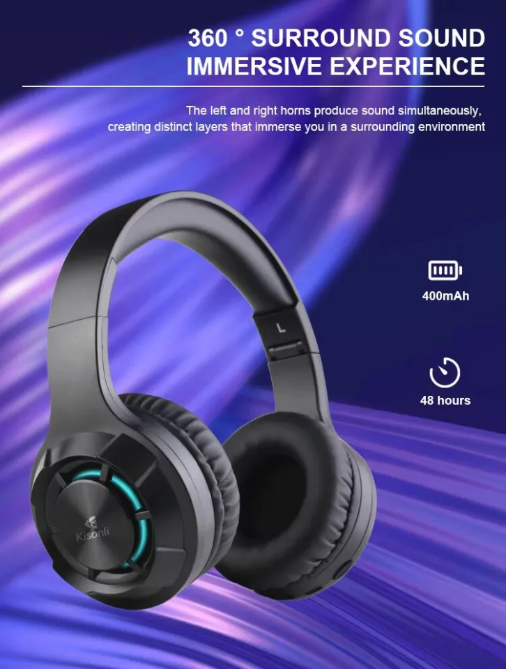 سماعة رأس بلوتوث Kisonli A2 للألعاب – إضاءة RGB – تشغيل حتى 48 ساعة