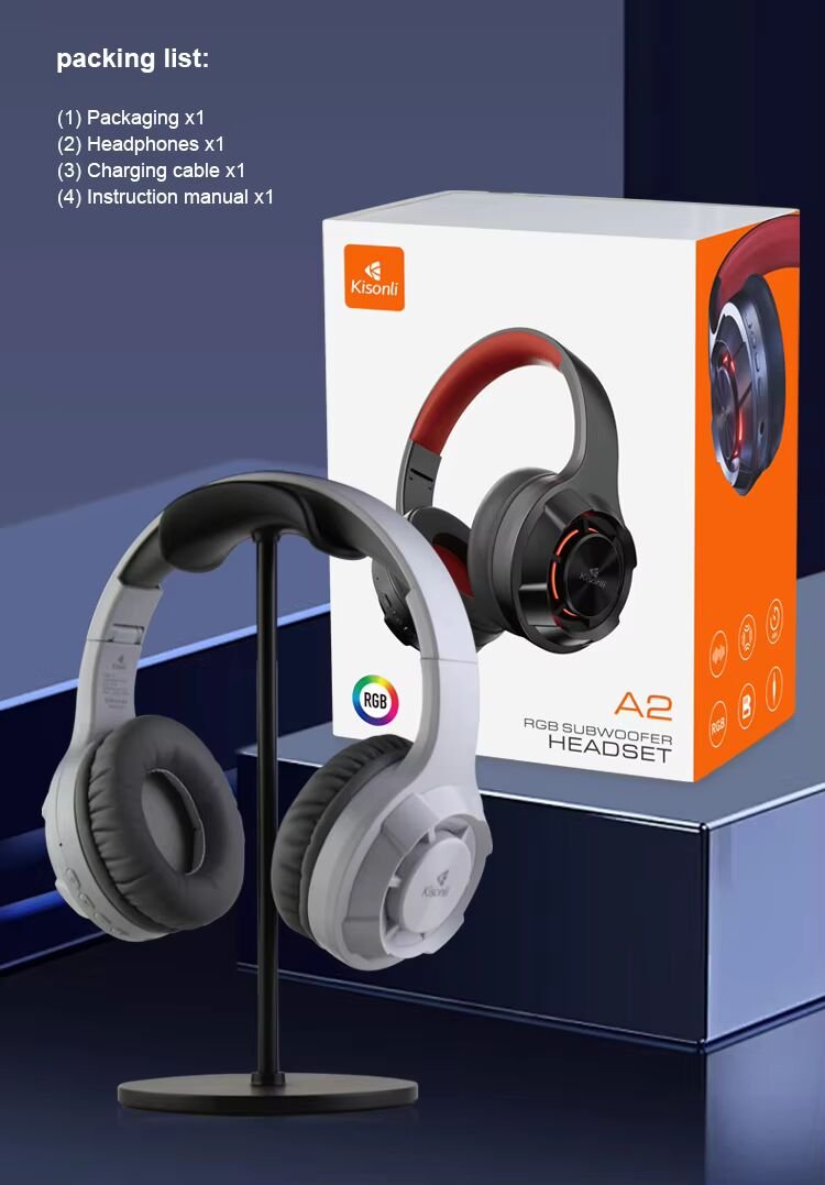 استمتع بتجربة صوتية مذهلة مع سماعة Kisonli A2 اللاسلكية، المصممة خصيصًا للألعاب والموسيقى. تتميز بإضاءة RGB جذابة، وعمر بطارية يصل إلى 48 ساعة، ودعم لتشغيل بطاقة TF وAUX.