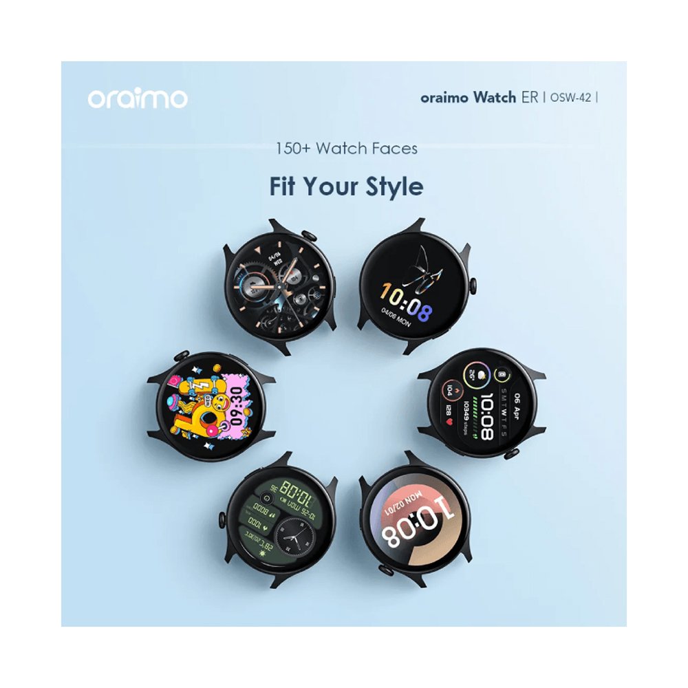 ساعة Oraimo Watch ER (OSW-42) هي ساعة ذكية أنيقة من الجيل التالي، مصممة خصيصًا للمستخدمين الذين يبحثون عن الأناقة والأداء. تتميز بشاشة AMOLED مقاس 1.43 بوصة بدقة 466×466، مما يوفر صورًا واضحة ورسومًا متحركة سلسة وألوانًا نابضة بالحياة في جميع ظروف الإضاءة.