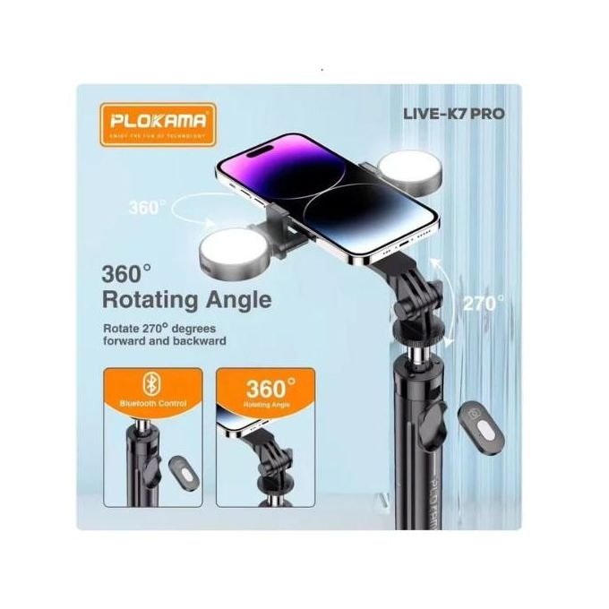 سواء كنت صانع محتوى محترفًا أو هاويًا، يوفر لك Plokama Live-K7 Pro الثبات والمرونة والإضاءة المثالية لرفع جودة إنتاجك إلى مستوى جديد.