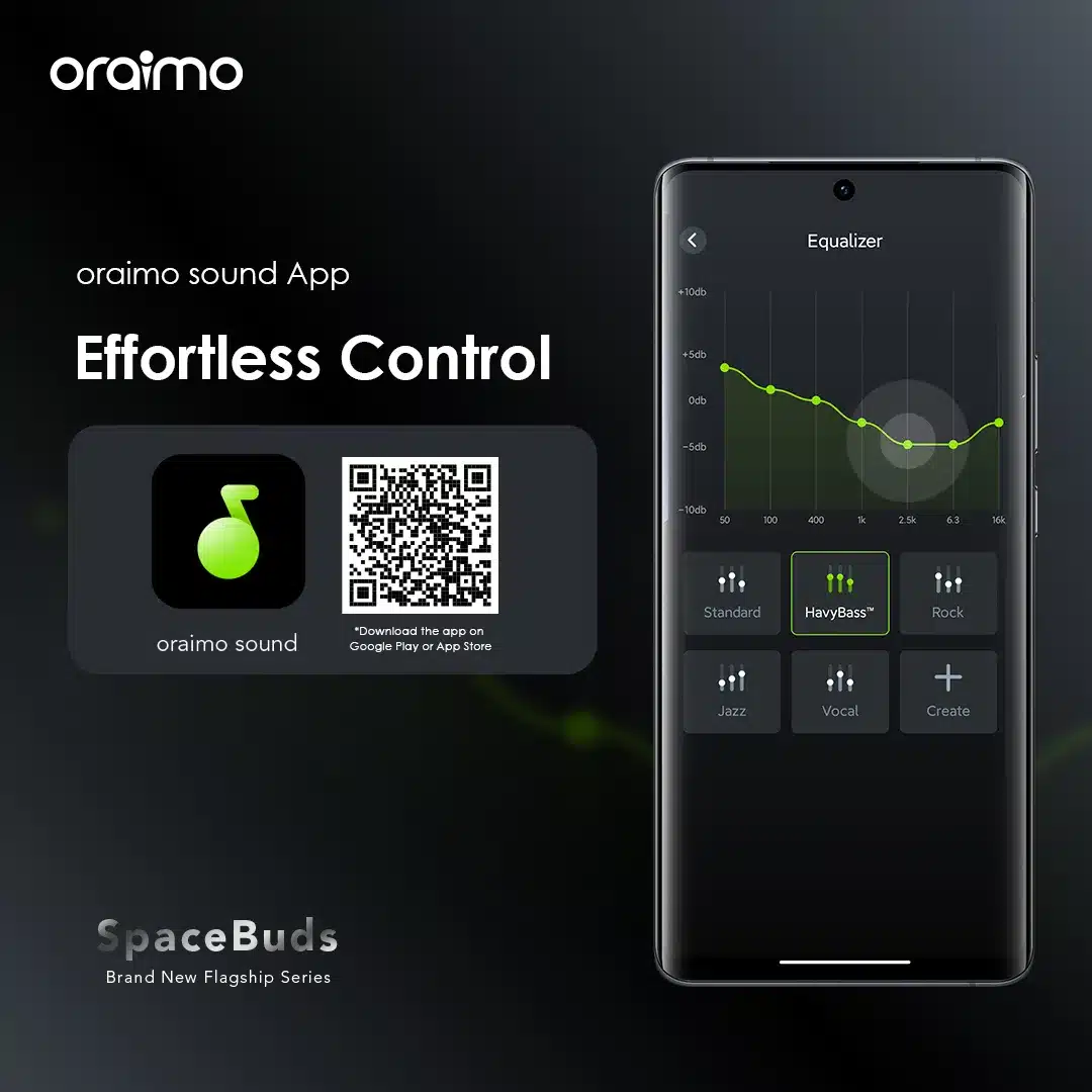 Introducing the Oraimo SpaceBuds Hybrid ANC OTW-630, the ultimate noise-cancelling earbuds offering 50dB Hybrid ANC with 6 microphones. Whether you’re on a call or immersed in music, enjoy crystal-clear audio and deep bass powered by a 10mm dynamic driver.