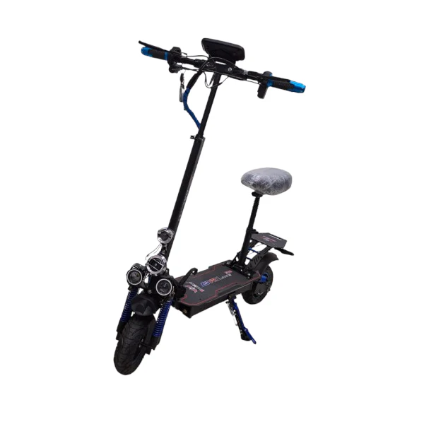 Powerful 1800W electric scooter with 60km/h top speed, 48V lithium battery, and up to 40km range. Features front & rear disc brakes, triple LED lights, dual suspension, and a comfortable seat. Best value scooter in Egypt 2025.