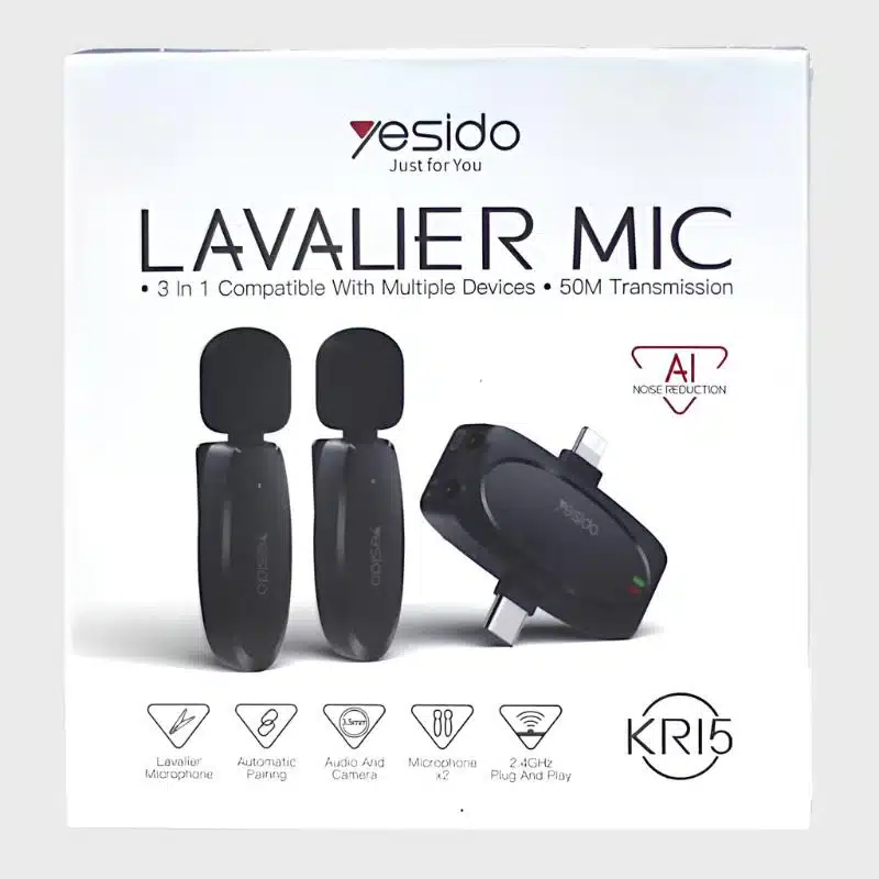 Be the first to review “Yesido KR15 3-in-1 Wireless Lavalier Microphone – Lightning + Type-C + 3.5mm – 50m Range, AI Noise Reduction, Dual Mics”