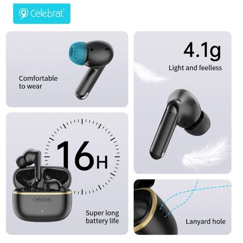 Lightweight and stylish, the Celebrat WD03 wireless earbuds deliver 16 hours of playtime, HiFi stereo sound, and a comfortable 4.1g design. Perfect for music, calls, and everyday use.
