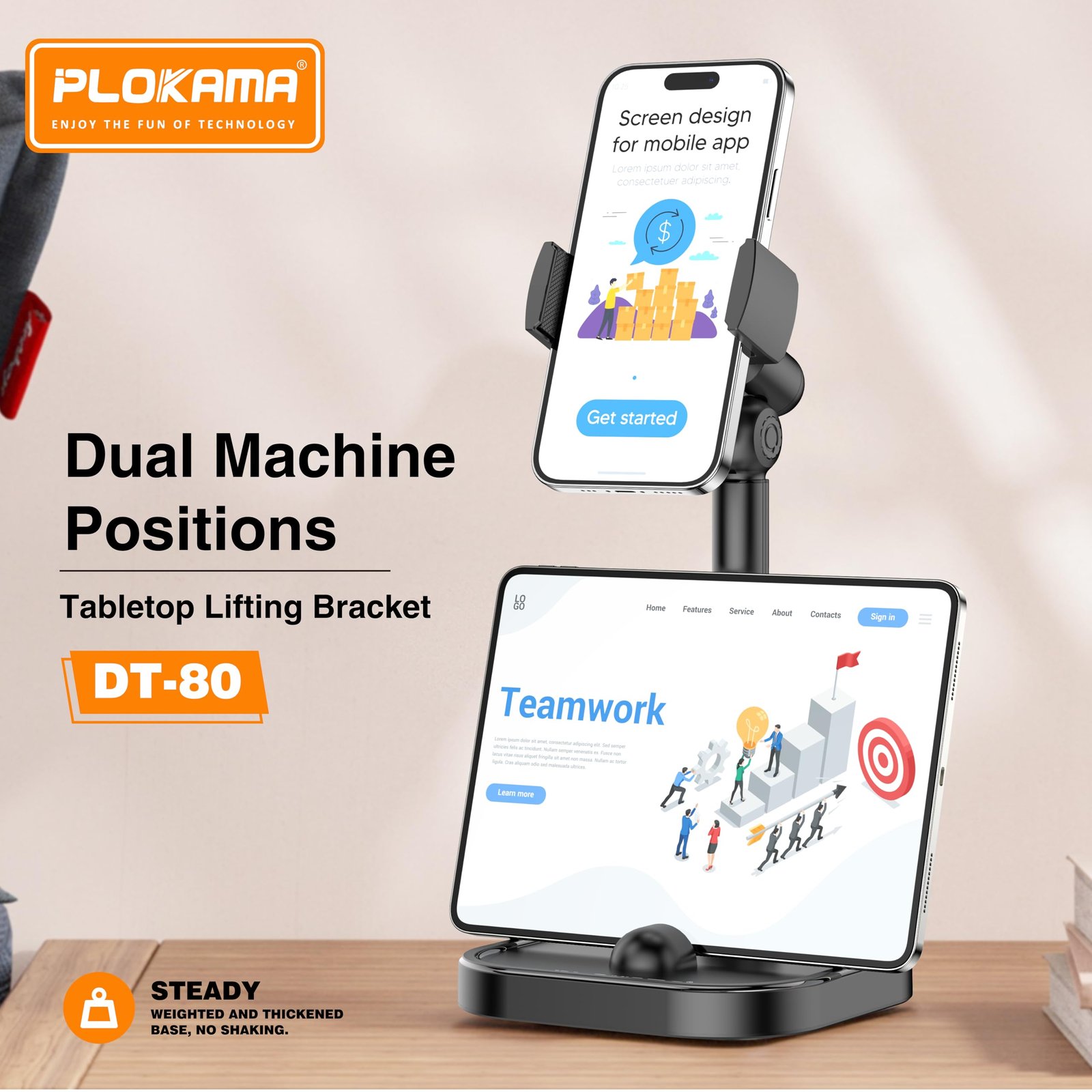 يقدم PLOKAMA DT-80 تجربة احترافية لمستخدمي الموبايل والتابلت على المكتب. فهو حامل قوي، ثابت، وقابل للتعديل ليناسب كل استخدامات العمل والدراسة والبث المباشر.