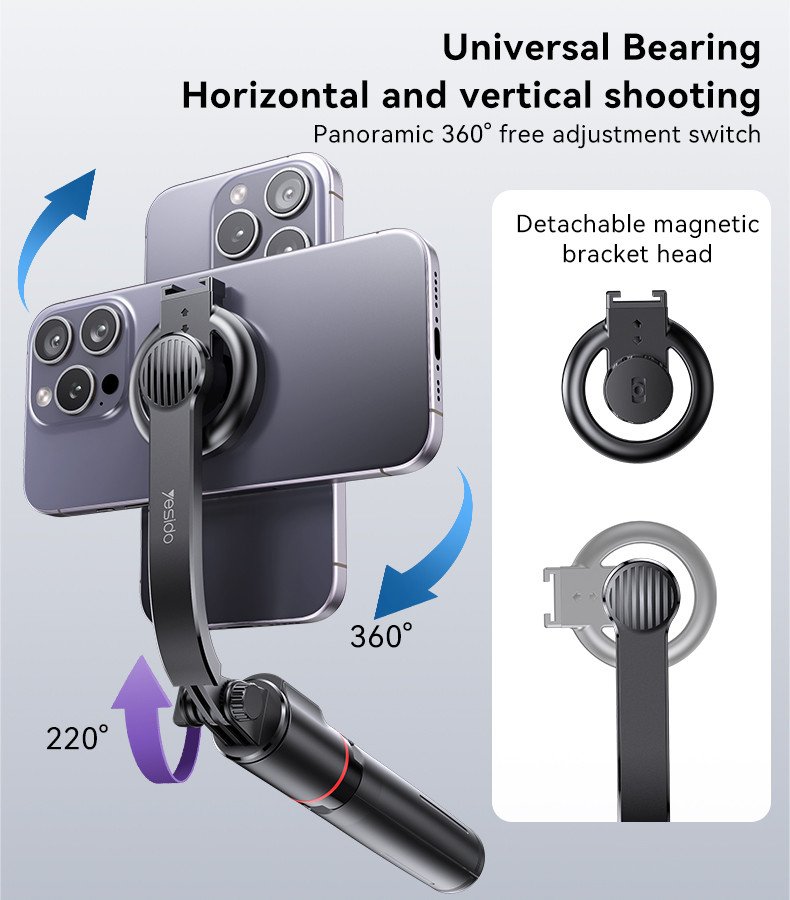 The Yesido SF19 is a premium magnetic selfie stick designed for users who want maximum stability, flexibility, and convenience. With a powerful N52 magnetic mount, an impressive 1045mm maximum height, and a stable aluminum tripod, the SF19 is ideal for selfies, vlogs, travel content, and professional shooting.